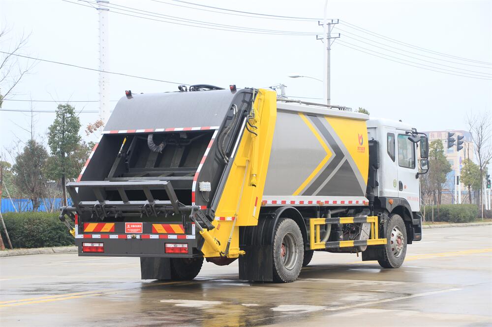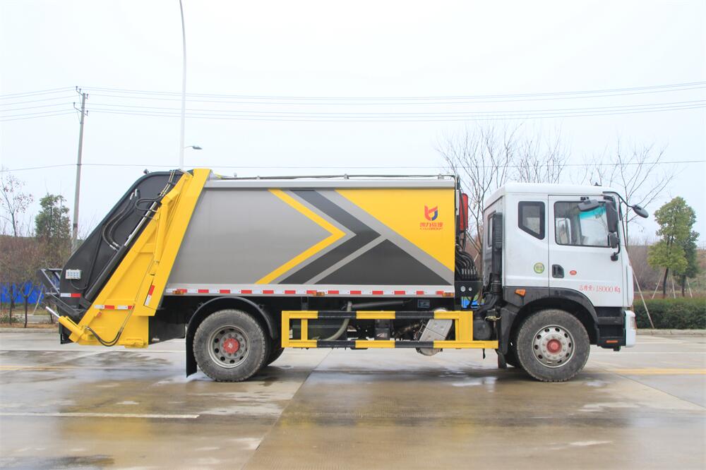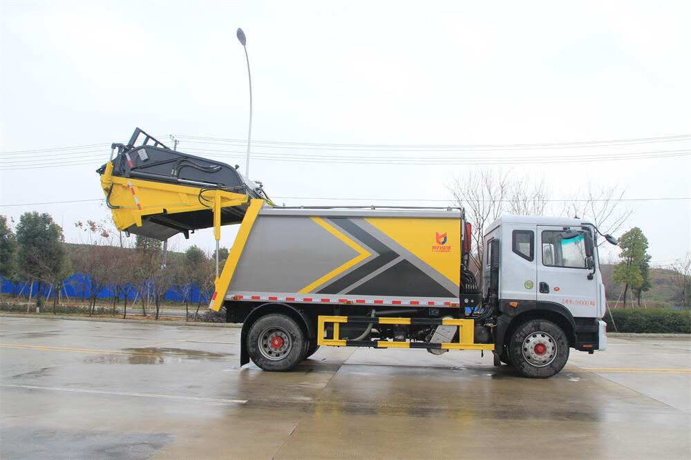上裝配置:垃圾箱容積:12方,新款平面弧形廂體,廂體材料為武鋼優質碳鋼,PLC一鍵操作**,手電一體操作模式,兩側雙電控,帶駕駛室內操作,底板支撐加強,雙向壓縮,開放式易清潔污水箱。壓縮式垃圾車采用機電液一體化技術,借助機、電、液聯合自動**系統、電腦**、手動操作系統,通過填裝器和推鏟等專用裝置,實現垃圾倒入、壓碎或壓扁、強力裝填,把垃圾擠入車廂并壓實和推卸,污水全部進入污水廂,解決了垃圾運輸過程中的二次污染的問題。壓縮式垃圾車具有自動反復壓縮以及蠕動壓縮功能,壓縮比高、密封性好、裝載量大﹑操作方便、環保性好﹑整車利用功率高等優點。作業自動化,垃圾收集方式簡便、高效。后翻轉機構選裝:1、掛塑料桶式翻轉機構;2、掛鐵桶式翻轉機構;3、擺臂式翻轉機構; 4、簸箕斗式翻轉機構。