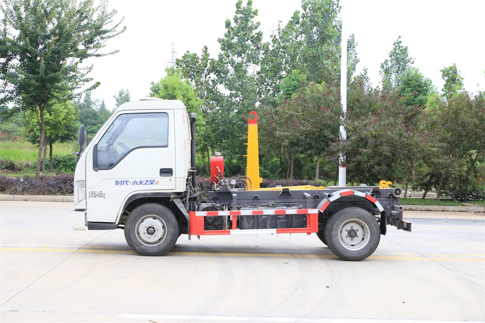 勾臂式垃圾車(車廂可卸式垃圾車)介紹: 車廂可卸式垃圾車又叫拉臂式垃圾車,是一種采用高新設計可伸縮的鉤臂,實現垃圾廂的二次吊裝,自吊上放下,可自行傾倒垃圾的環衛設備。 拉臂式垃圾車結構簡單,操作穩定方便,裝卸效率高,機械化程度高,節省人力。鉤臂垃圾車一車可帶多個垃圾廂,在裝卸的運輸過程中可有效地避免二次污染。 拉臂垃圾車采用高新設計可擺動的鉤臂,垃圾箱由框架、開啟油缸、滑輪、后門和若干加強框架與鋼板焊接而成。調換貨廂快捷方便,貨廂上帶蓋(倒垃圾時可翻開),鉤臂垃圾車垃圾廂體可選用碳鋼、不銹鋼材質、內部采取環氧樹脂防腐處理,改裝部分與原車底盤為可分離式,維修方便且保持了原車的機動性及行駛性能。