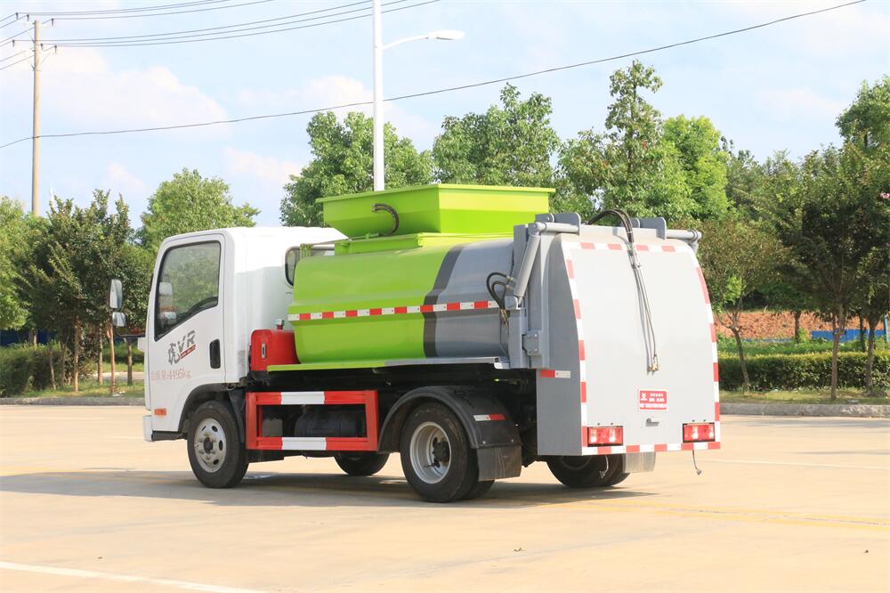 上裝配置:罐體容積6m3,配備120L/240L掛桶提升翻轉機構,液壓系統,后蓋液壓鎖緊開啟,罐體可以舉升自卸,尾部帶自流閥;用于運輸液態垃圾,其特點操作簡單,密封性好,無泄漏,無異味;可選裝固液分離功能,推板擠壓功能,常用于餐館的垃圾轉運處理。