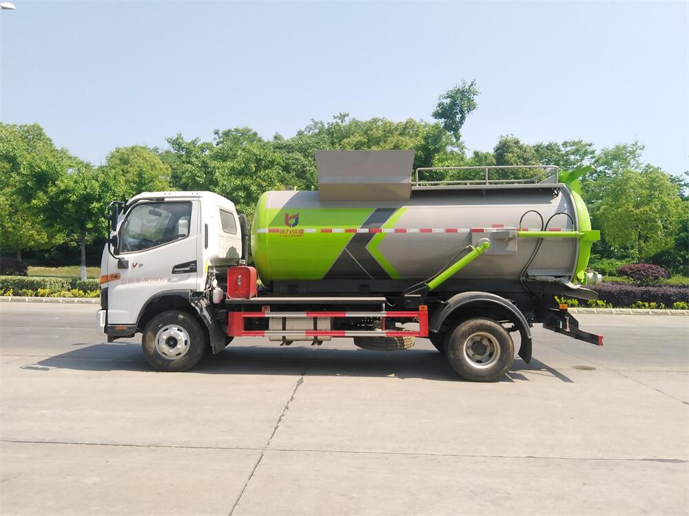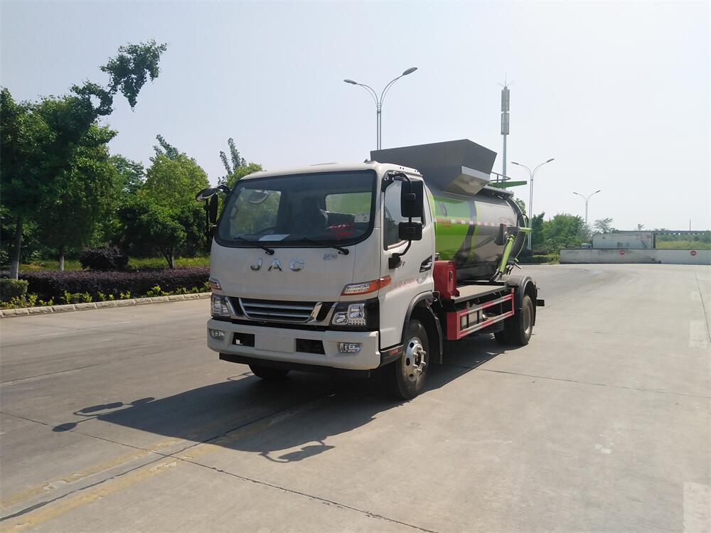 上裝配置:罐體容積8m3,配備120L/240L掛桶提升翻轉機構,液壓系統,后蓋液壓鎖緊開啟,罐體可以舉升自卸,尾部帶自流閥;用于運輸液態垃圾,其特點操作簡單,密封性好,無泄漏,無異味;可選裝固液分離功能,推板擠壓功能,常用于餐館的垃圾轉運處理。