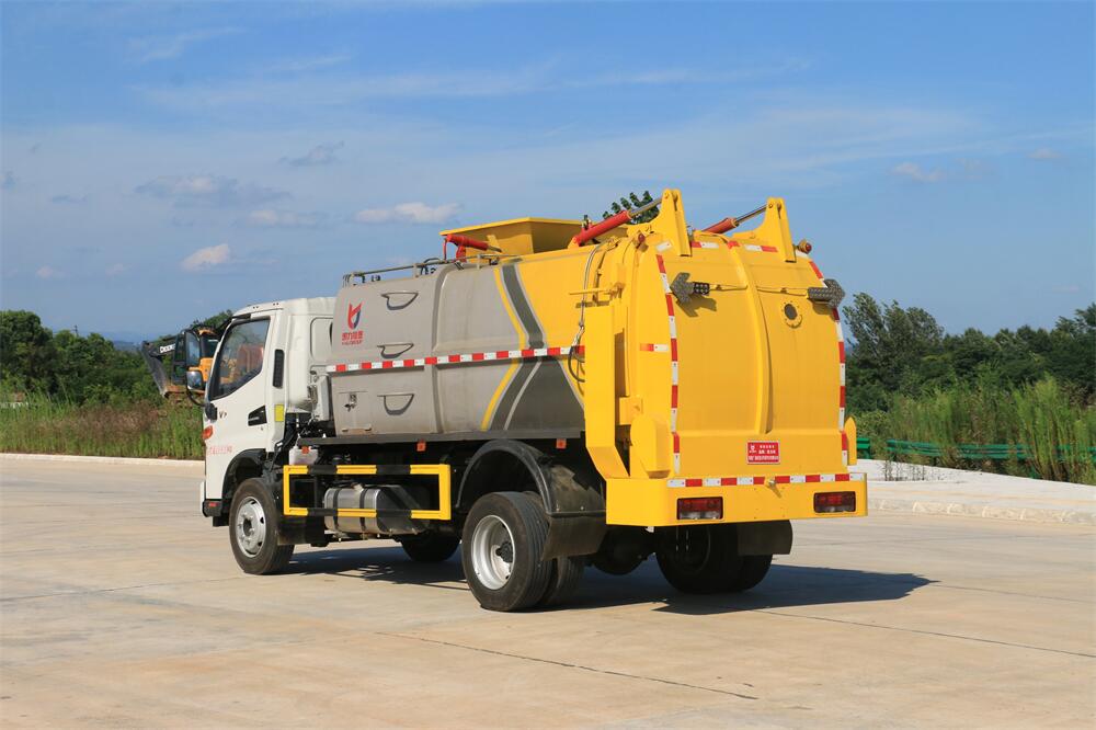 上裝配置:罐體容積8m3,配備120L/240L掛桶提升翻轉機構,液壓系統,后蓋液壓鎖緊開啟,罐體可以舉升自卸,尾部帶自流閥;用于運輸液態垃圾,其特點操作簡單,密封性好,無泄漏,無異味;可選裝固液分離功能,推板擠壓功能,常用于餐館的垃圾轉運處理。