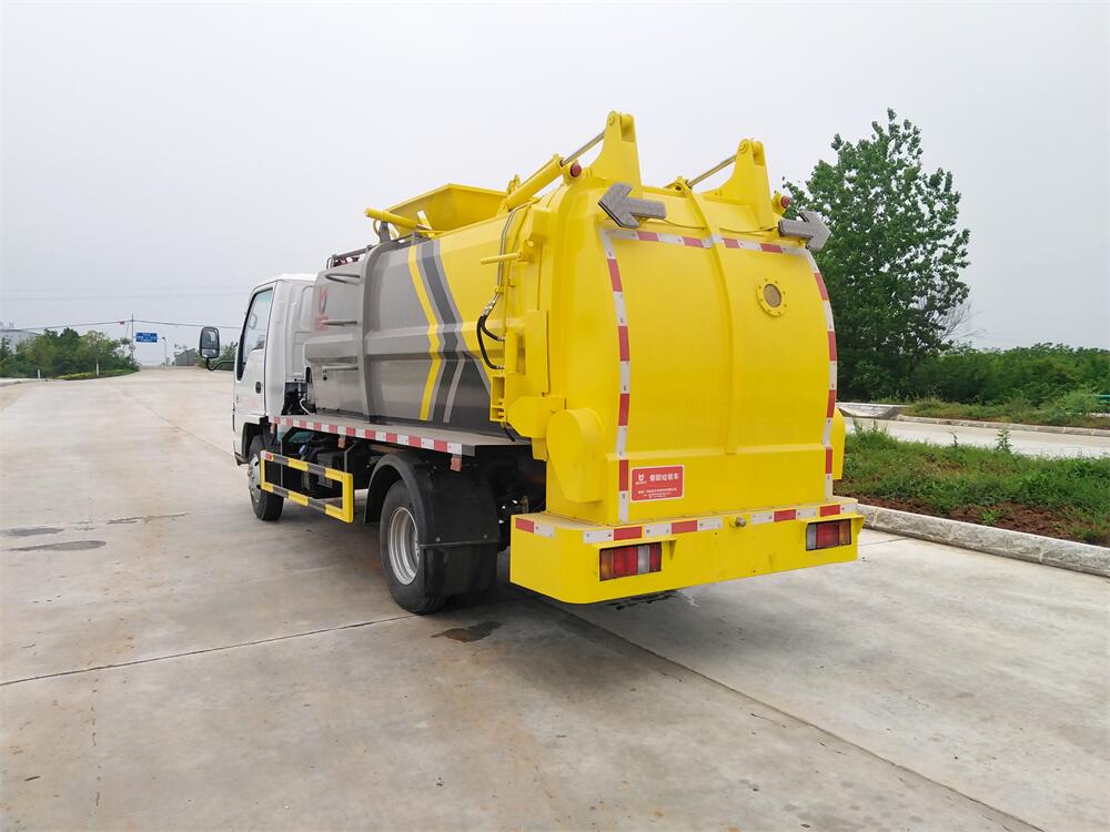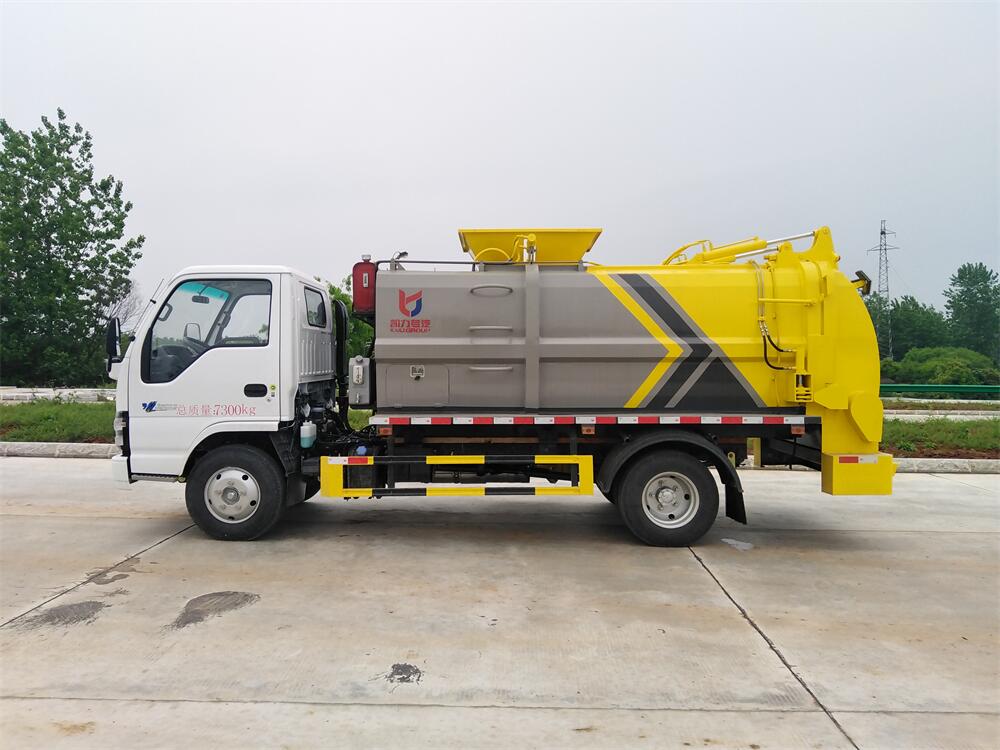 上裝配置:罐體容積6m3,配備120L/240L掛桶提升翻轉(zhuǎn)機(jī)構(gòu),液壓系統(tǒng),后蓋液壓鎖緊開啟,罐體可以舉升自卸,尾部帶自流閥;用于運(yùn)輸液態(tài)垃圾,其特點(diǎn)操作簡(jiǎn)單,密封性好,無(wú)泄漏,無(wú)異味;可選裝固液分離功能,推板擠壓功能,常用于餐館的垃圾轉(zhuǎn)運(yùn)處理。