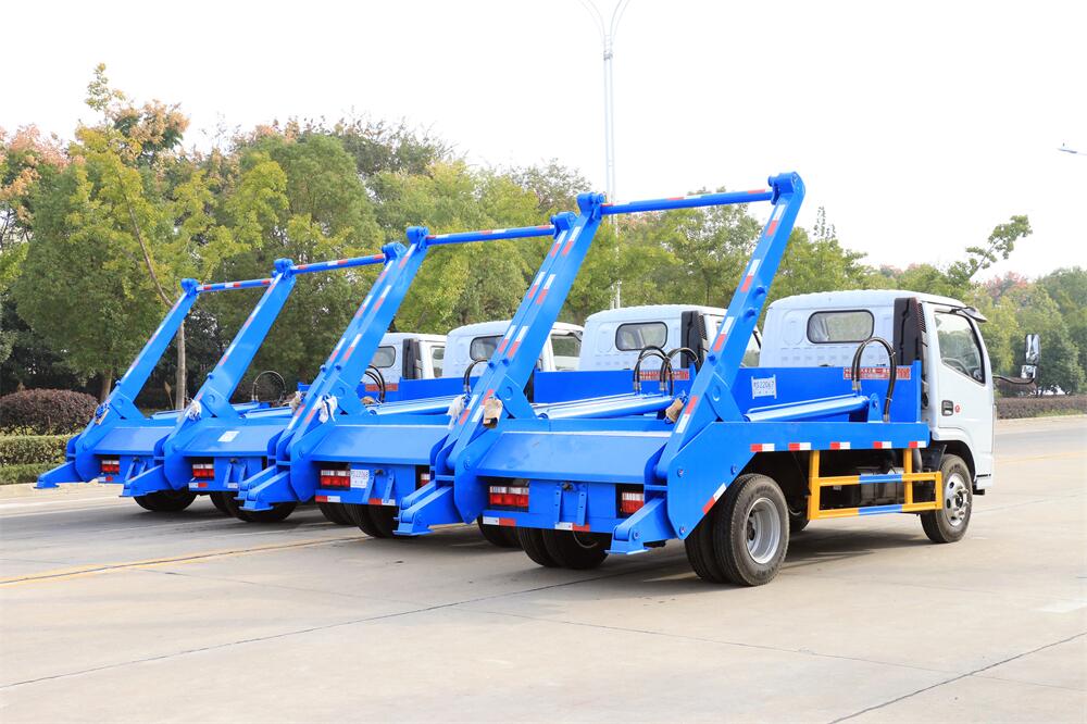 擺臂垃圾車用途:擺臂式垃圾車適用于全國通用垃圾斗,帶自卸功能,液壓操作,垃圾斗可自吊上吊下,擺臂一次工作循環時間:≤60秒。該車特點是貨斗與車體分開,能實現一臺車與多個貨斗聯合作業,循環運輸,充分提高了車輛的運輸能力,特別適用于短途運輸,如環衛部門對城鎮垃圾的清理、運輸等。