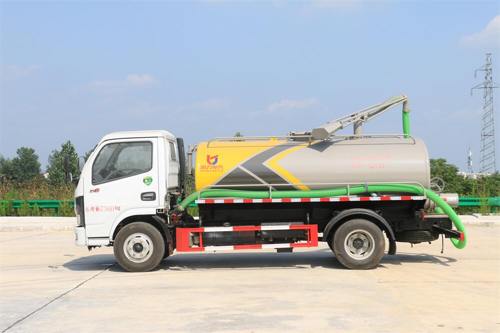上裝配置:5T真空油泵(SK-9水循環(huán)泵), 油水分離器 ,防溢閥,視糞管,洗水箱,吊桿座(可270度旋轉(zhuǎn)),尾部一個(gè)220排糞口帶駕駛室操作,一根6米吸糞管帶陰陽端快接頭。