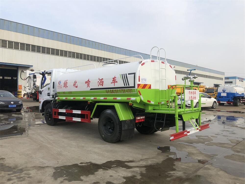 灑水車性能特點:前沖(噴)后灑,帶側噴,罐體后帶工作平臺,平臺上安裝綠化灑水炮,灑水炮可360旋轉,可連續調成直沖狀、大雨、小雨、毛毛雨,帶安全護欄,配備全國質量評比**名的杭州威龍大功率專用  灑水泵,泵可自吸自排,安裝過濾網,帶消防接口,可通過消防栓進水,帶自流閥,隨車選裝20米綠化卷盤,可噴灑農藥。