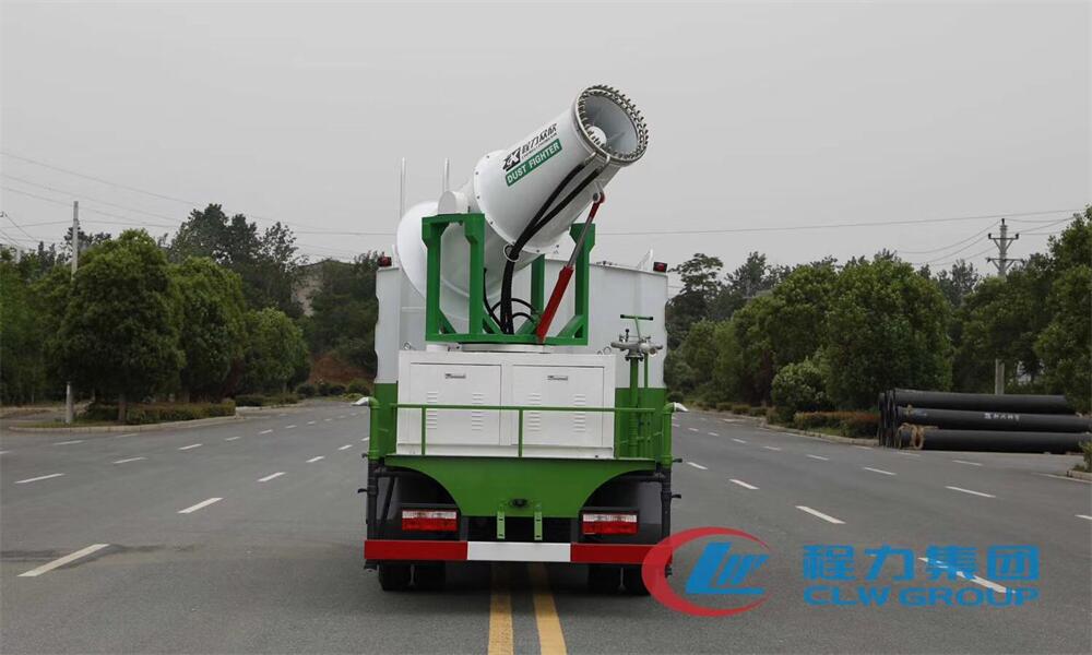 上裝配置:罐體容積為 8立方,選配風(fēng)送式霧炮機(jī)組射程30米、40米、50米、60米、80米、100米、120米霧炮,罐體鋼板為4mm碳鋼Q235材質(zhì),罐內(nèi)隔板具有防波作用,以減輕汽車(chē)行駛時(shí)罐體液體沖擊,罐體及整車(chē)外形尺寸按照公告。帶大功率專(zhuān)用灑水泵,泵可自吸自排,整車(chē)前沖、后灑、側(cè)噴、帶65消防接口,后平臺(tái)配CLW-50、CLW-60、CLW-80、CLW-100、CLW-120型風(fēng)送式霧炮機(jī)組;罐體前封頭配大功率柴油發(fā)電機(jī)組;前封頭帶水位計(jì),后平臺(tái)主管路帶1寸澆花接口,后爬梯。帶兩根輸水管及陰陽(yáng)端。罐體顏色:銀/灰/綠,罐體兩側(cè)噴“多功能抑塵車(chē)”字樣,貼反光標(biāo)示。