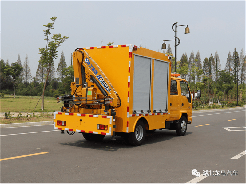車輛尾部安裝2噸徐工折臂吊機,**大額定起重質量:2000Kg,車輛兩側都可操作吊機工作。帶2個液壓支腿。
