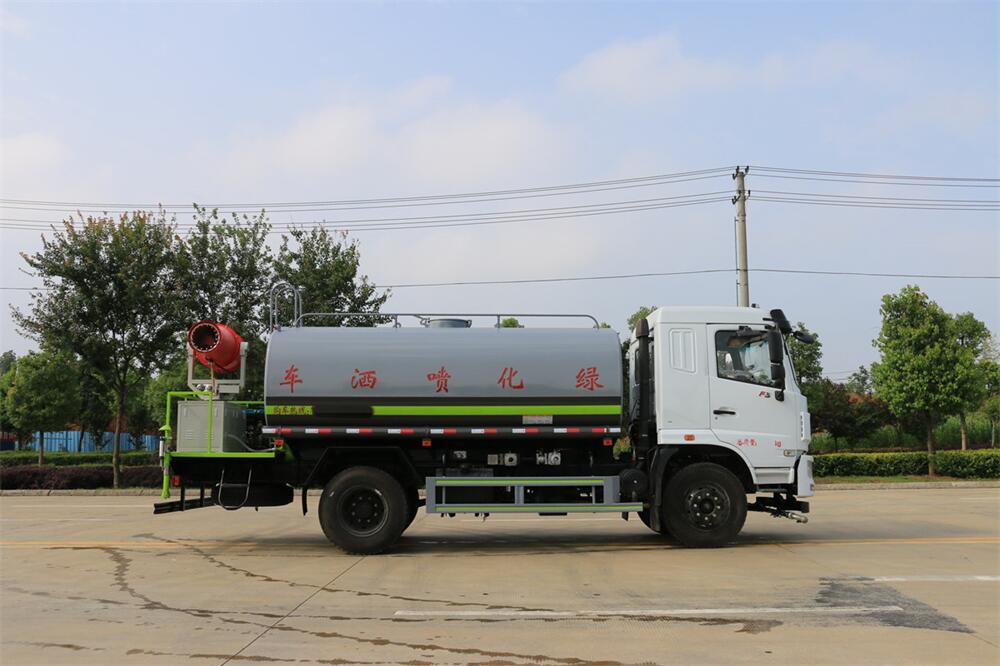 主要由發動機帶動變速箱,變速箱上安裝的取力器帶動灑水泵,灑水泵產生動力,將罐體內部的液體通過管網噴灑出去。工作范圍:自吸高度:≥7m,灑水寬度:≥14m,**大射程:≥28m;可調節成柱狀,射程≥28m;也可調節成霧狀,射程≥5m。