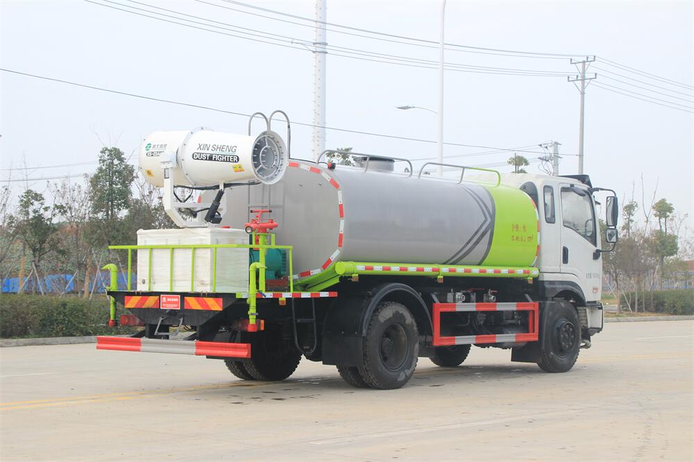 主要由發動機帶動變速箱,變速箱上安裝的取力器帶動灑水泵,灑水泵產生動力,將罐體內部的液體通過管網噴灑出去。工作范圍:自吸高度:≥7m,灑水寬度:≥14m,**大射程:≥28m;可調節成柱狀,射程≥28m;也可調節成霧狀,射程≥5m。