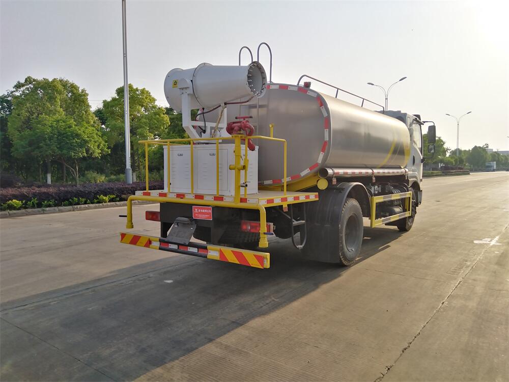 上裝配置:罐體容積 12立方,風送式霧炮機組30米,40米選擇,罐體采用國標Q235碳鋼材質,罐體厚度4MM,前后封頭5MM加厚型,罐體內雙層隔板具有防波蕩作用,以減輕汽車行駛時罐內液體沖擊;灑水車整車及外形尺寸嚴格按照**機動車公告制作而成;裝配大功率專用灑水泵,前沖、后灑、側噴、后平臺帶綠化灑水炮,灑水炮可全方位旋轉,可連續調成直沖狀、大雨、小雨、毛毛雨;配消防接口,自流閥,濾網,帶自吸自排功能。前封頭帶水位計,后平臺主管路帶1寸澆花接口,后爬梯,帶1個消防接頭,帶1個自流閥,1個過濾裝置,其余標配。