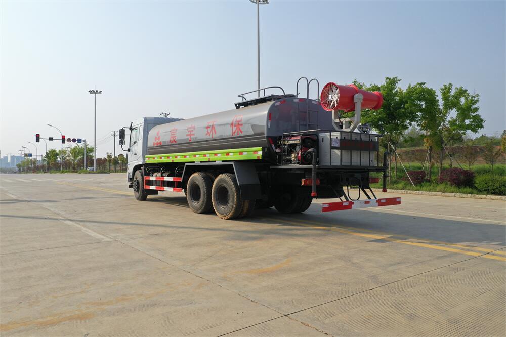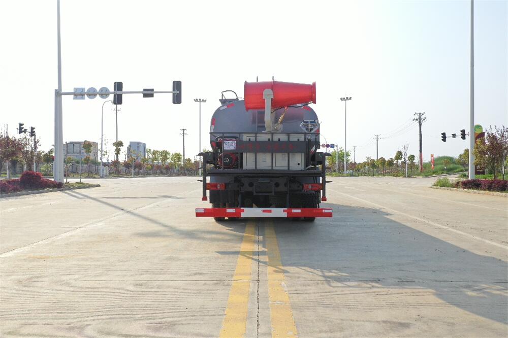 上裝配置:罐體容積 18-20立方,風送式霧炮機組30米,40米選擇,罐體采用國標Q235碳鋼材質,罐體厚度4MM,前后封頭5MM加厚型,罐體內雙層隔板具有防波蕩作用,以減輕汽車行駛時罐內液體沖擊;灑水車整車及外形尺寸嚴格按照**機動車公告制作而成;裝配大功率專用灑水泵,前沖、后灑、側噴、后平臺帶綠化灑水炮,灑水炮可全方位旋轉,可連續調成直沖狀、大雨、小雨、毛毛雨;配消防接口,自流閥,濾網,帶自吸自排功能。前封頭帶水位計,后平臺主管路帶1寸澆花接口,后爬梯,帶1個消防接頭,帶1個自流閥,1個過濾裝置,其余標配。