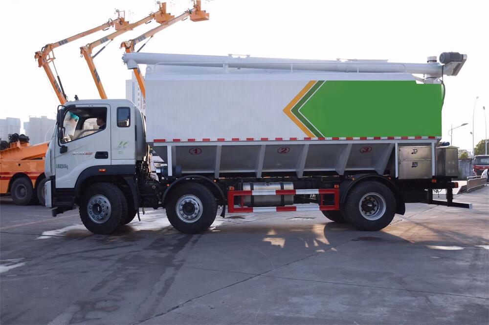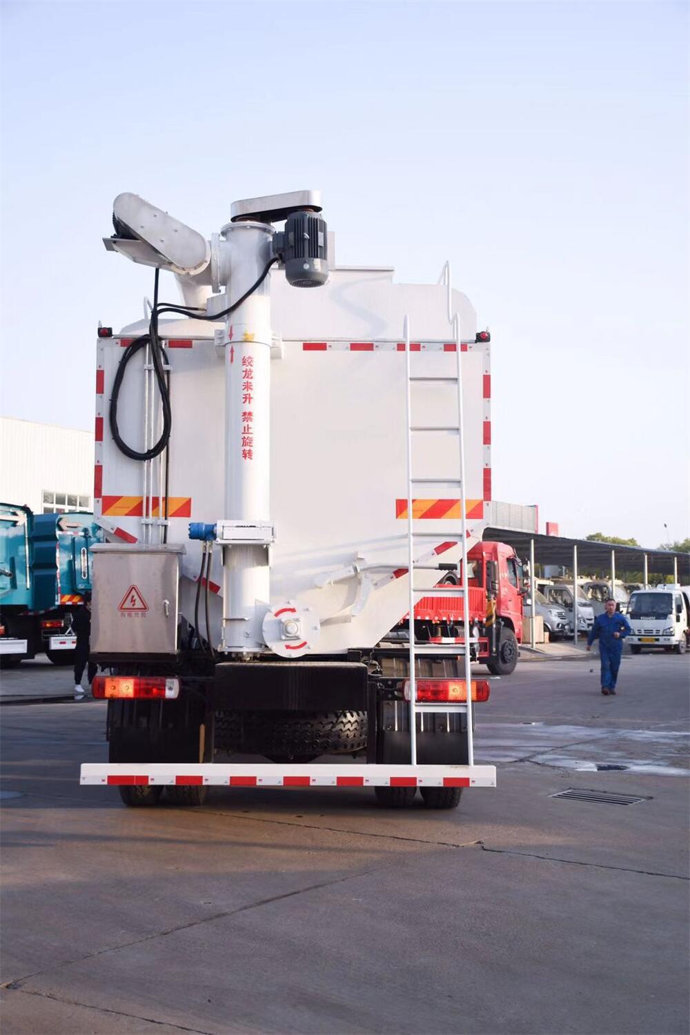 罐體配置:罐體采用2mm輕量化鋼板,整車3條絞龍(水平,垂直,出料),出料絞龍用液壓**舉升,可左右旋轉180度。罐體內分為4個倉,可以****各分倉卸料順序和速度。
