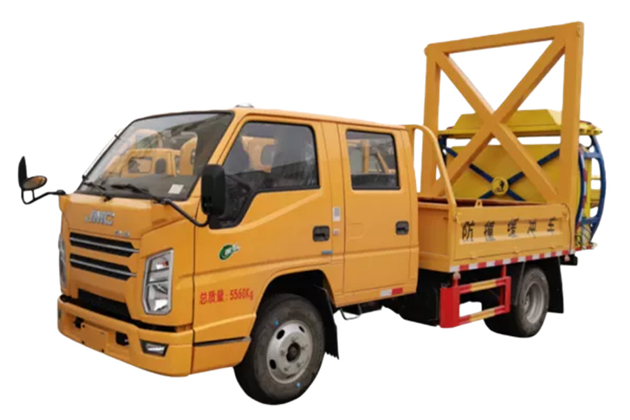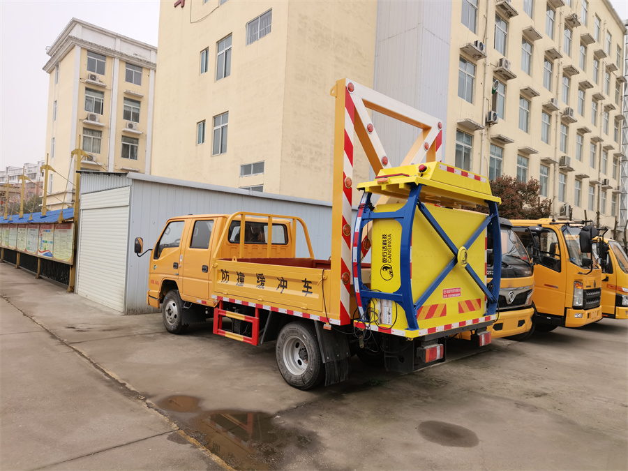上裝配置:防撞緩沖車尾部設置防撞緩沖塊,防撞緩沖塊采用液壓升降裝置,還配備車載一體化的電子屏、電子箭頭標志牌、頻閃燈及爆閃燈多種**示燈,能夠為后方車輛提供**示和指示方向。箭頭指示標志可對左、右及禁止通行進行導向指示,對道路車輛提供主動安全引導和安全**示,**大限度降低施工對**流量的影響并確保安全。尾部升降和燈具采用遙控**,可在車輛附近安全**防撞緩沖塊的升降和**示燈的開關。