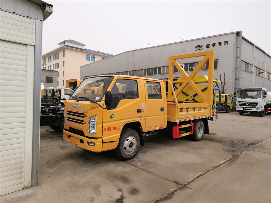四,駕駛室后部裝有吊機,增加整車**功能,可用于客戶對施工中的重物進行吊運。
