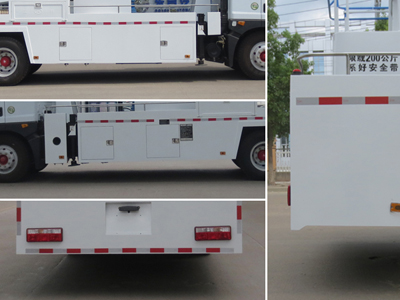 前伸:30mm;僅采用5200mm軸距;隨底盤選裝駕駛室;側面防護及后下部防護裝置材料材質:Q235,整體式結構,后下部防護裝置離地高度:480mm;ABS系統生產廠家,型號 :焦作博瑞克**技術有限公司,J ABS;主要專用裝置為折疊臂,用于搶修電力、通訊、路燈等高空作業.