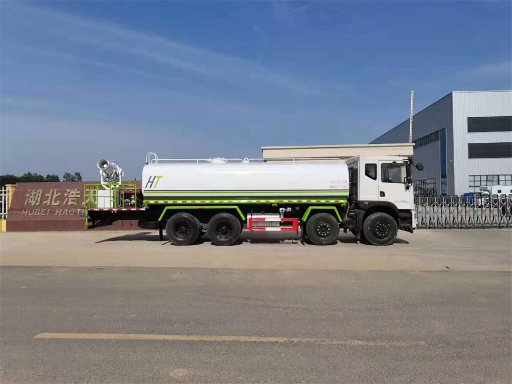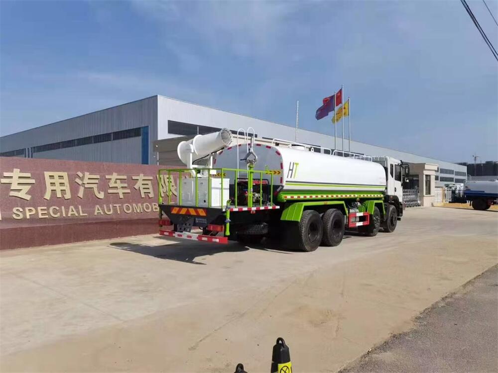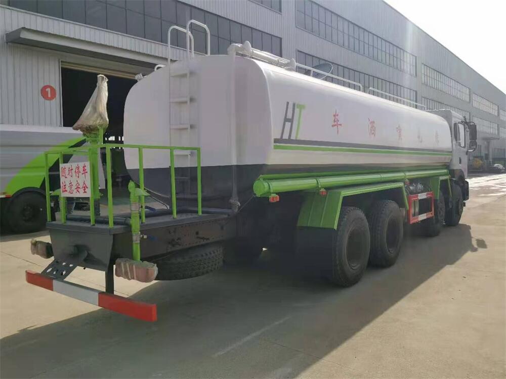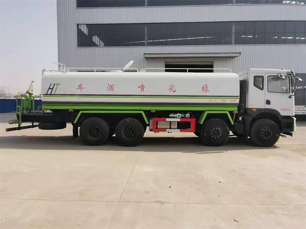 灑水車前裝有鴨形噴嘴或圓頭沖嘴,后面裝有圓柱開灑水噴嘴或蓮蓬頭噴嘴,后部有一工作平臺,裝配有水炮。后部還可裝8個噴嘴(選裝)。